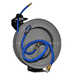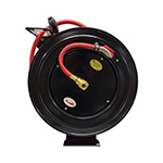 The Single Arm Steel Hose Reel offers reliable performance and long-lasting durability in a compact, easy-to-install design. It's five-position outlet arm supports ceiling, wall, or cabinet mounting, while the proven spring mechanism ensures smooth hose return. Built with thick-wall components, stamped steel construction, and a powder-coated bak finish for corrosion resistance, it includes a durable nylon air hose, ball stop, and 3' connection hose.